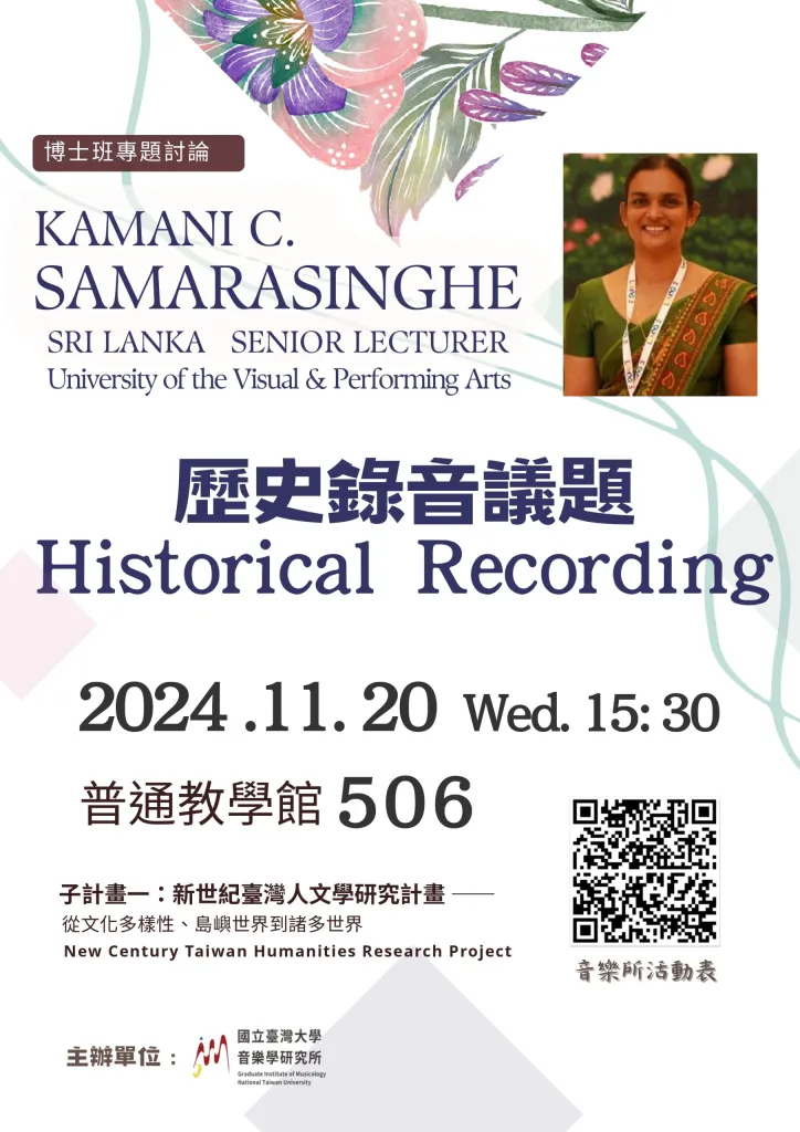 【博士班專題討論③】歷史錄音議題,講者: Kamani Samarasinghe